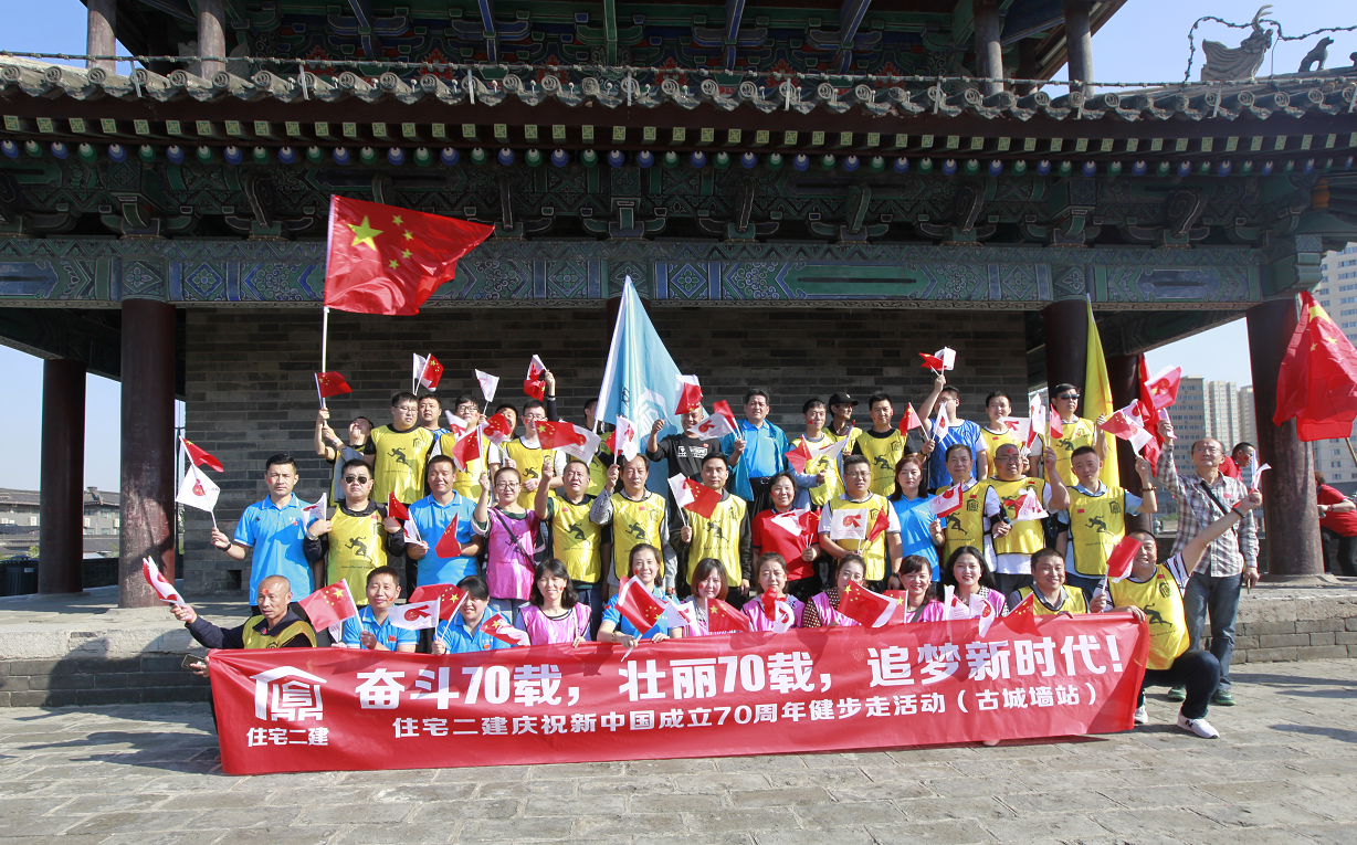 為慶祝中華人民共和國成立70周年,9月25日早上9:00住宅二攜手下屬基層單位陜西中盛建設科技服務有限公司共計130余人在西安古城墻上開展了系列慶祝活動,長樂坊所轄的八仙庵社區也參加了本次活動。