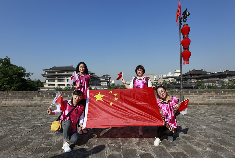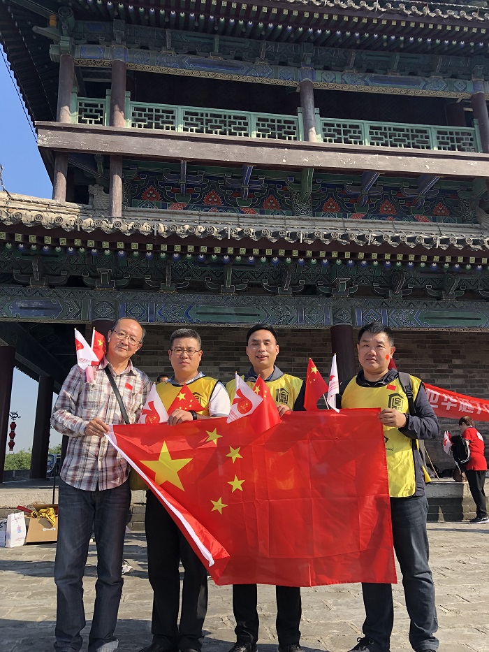 健步走活動是本次最后一項活動,線路是從長樂門出發至永寧門,再返回至長樂門。大家邁著堅定自信的步伐,走在古城墻上,欣賞著護城河、箭樓、女兒墻垛等一系列防御設施,前望不到頭,后望不到頭,看著下面如螞蟻般蠕動的人們,不禁感慨西安變化之大。活動途中大家三五成群,邊走邊拍照,引得其他游客也激動的加入此次活動。還有許多同事通過我們的采訪鏡頭表達了他們對中華人民共和國成立70周年的美好祝福。